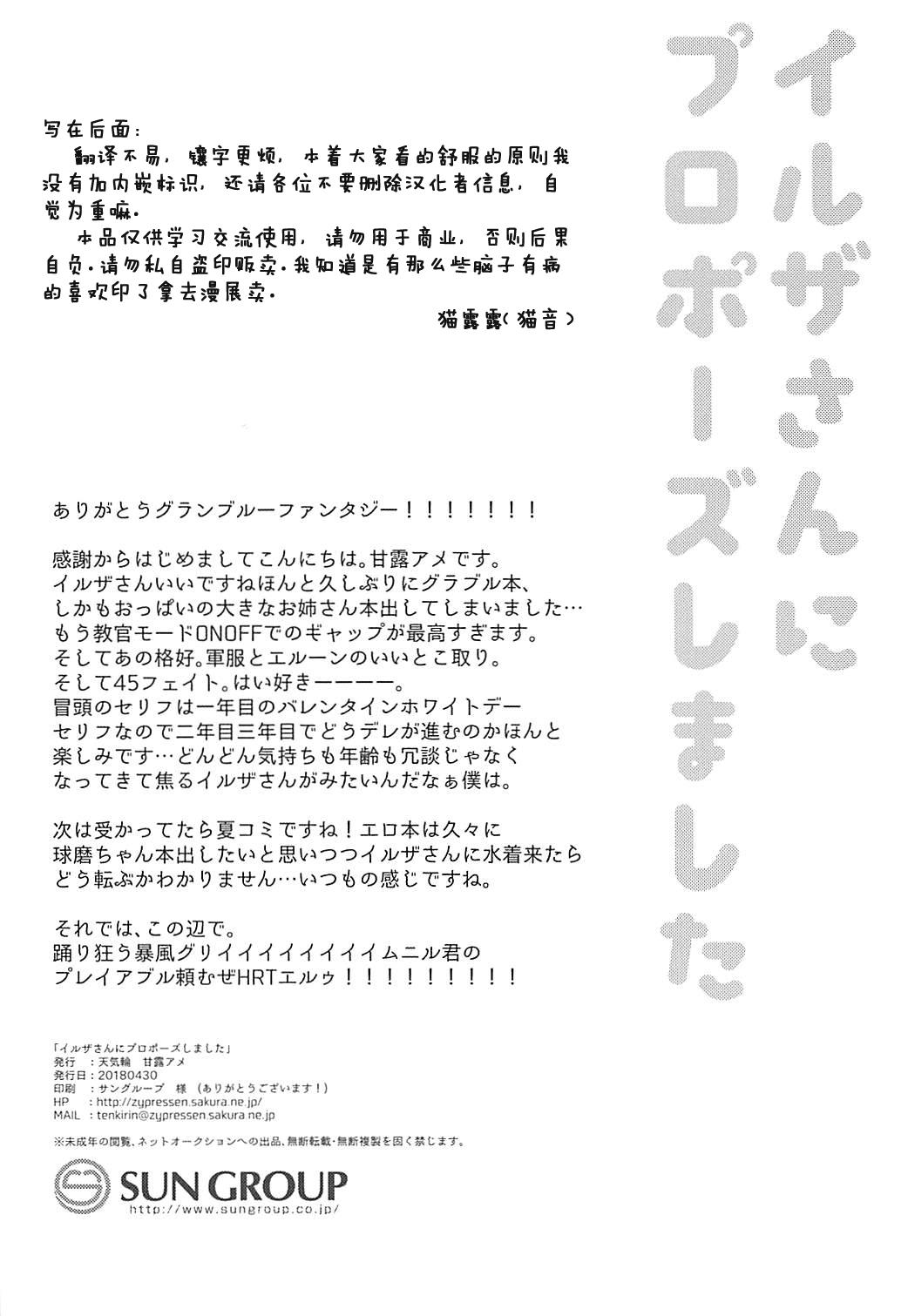 COMIC1☆13 天気轮 甘露アメ イルザさんにプロポーズしました グランブルーファンタジー 中国翻訳